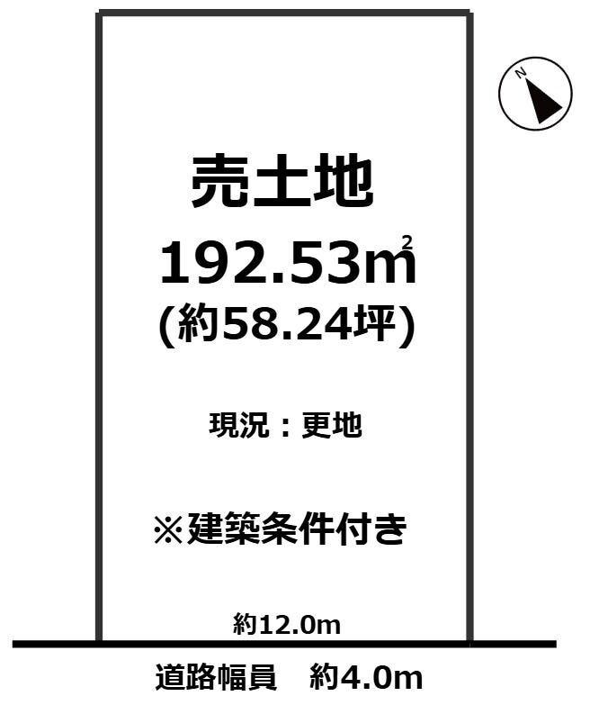 | 土地面積 | 公192.53㎡(58.24坪) | 接道 | 南東側(公道)幅 約4.6m 間口 約10.60m |